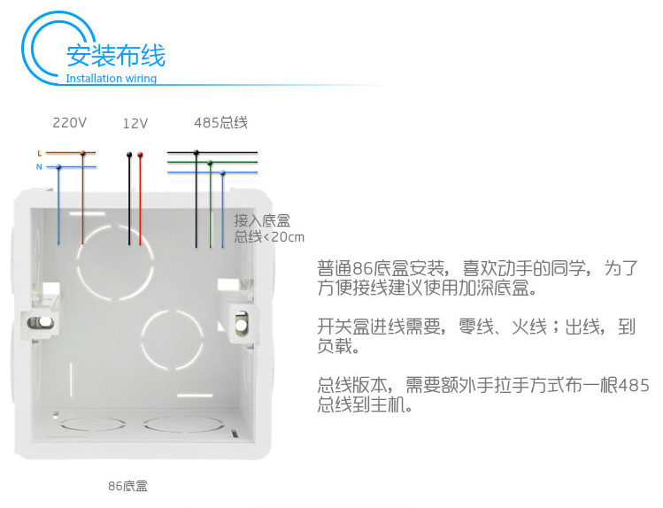 普通86底盒安装,喜欢动手的同学,为了方便接线建议使用加深底盒。