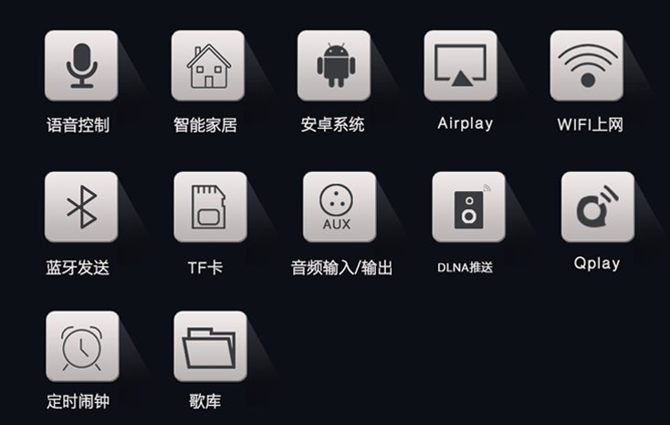 高清电容触摸屏, 开放SDK,快速对接, 签约正版音乐内容版权 ,7寸安卓系统,四核处理器。
